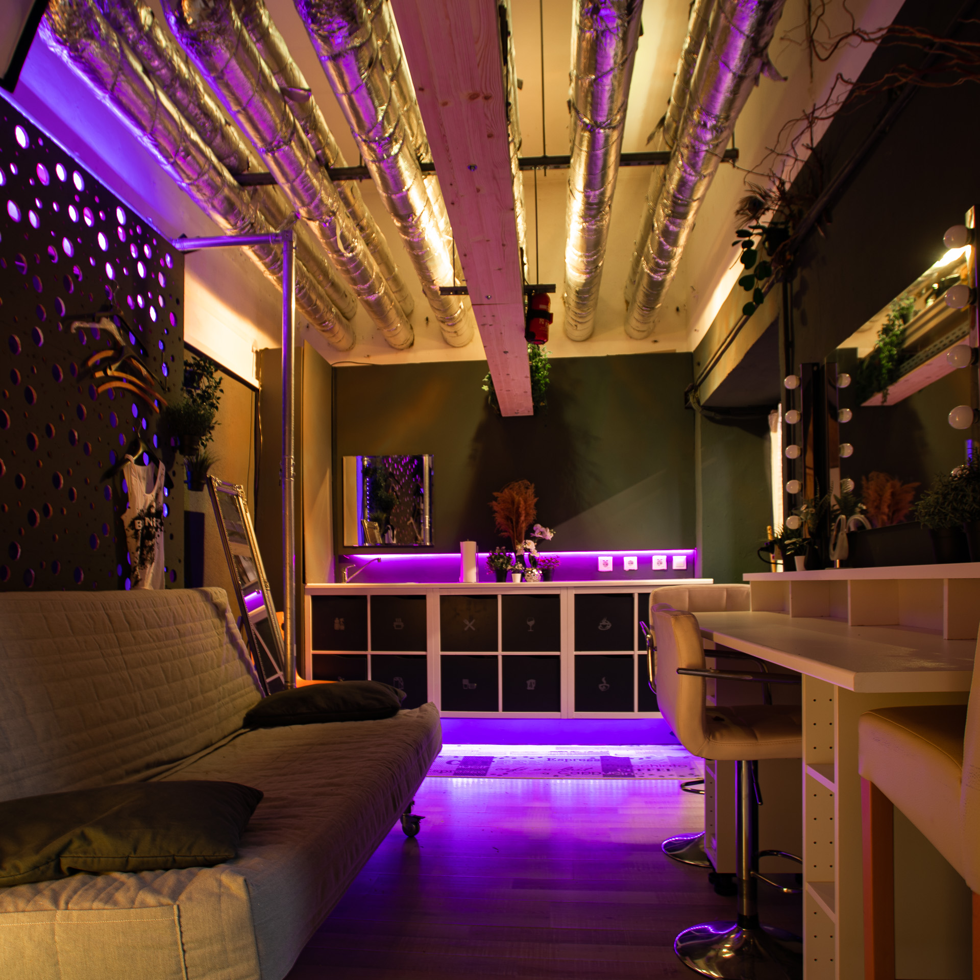 In der Studiomiete ist die Nutzung der Lichttechnik sowie der Grundausstattung enthalten. Die Technik besteht aus dem Hensel System mit verschiedenen Blitzköpfen und Lichtformern sowie einem Deckenschienensystem. Stative können aber ebenso genutzt werden wie die eigene Lichttechnik die du selbstverständlich auch mitbringen kannst.